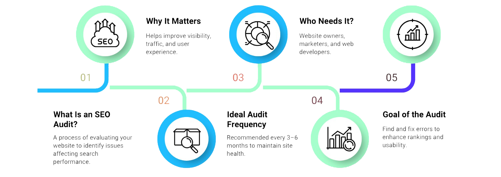 We improve your site’s speed, crawlability, mobile performance, and indexing. A technically strong site ensures better rankings and a smooth user experienc